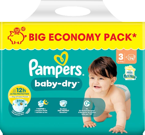 Windeln Baby Dry Gr.3 Midi (6-10 kg), BigPack, 74 St