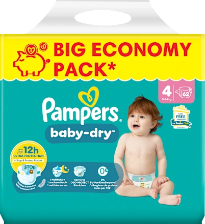 Windeln Baby Dry Gr.4 Maxi (9-14 kg), Big Pack, 62 St