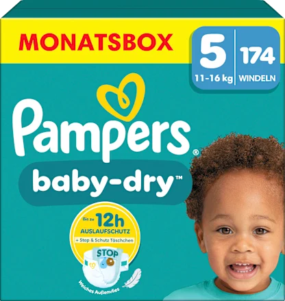 Windeln Baby Dry Gr.5 Junior (11-16k g), Monatsbox, 174 St